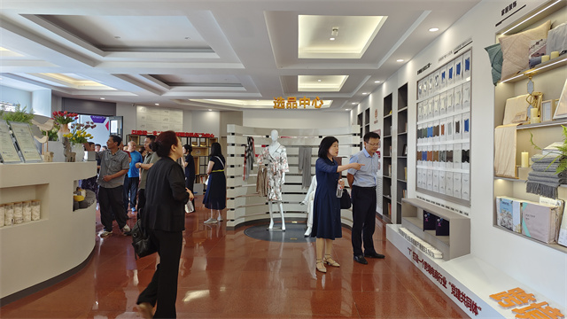 在華紡股份黨委書記、董事長盛守祥的帶領(lǐng)下,大家來到華紡老廠區(qū),那里陳列著一幅幅彌足珍貴的歷史照片,它們鐫刻著大家共同奮斗的往昔歲月。在這些影像前,老員工們的思緒仿佛瞬間被拉回到那激情澎湃的年代,熟悉的面容、難忘的瞬間,一一重現(xiàn)眼前,喚起了無數(shù)美好回憶。緊接著,大家又來到華紡股份新廠區(qū),參觀了智云中心、檢測中心、綜合辦公區(qū)、服裝面料公司、花布公司、家紡公司、創(chuàng)意中心、工程技術(shù)研究院等區(qū)域。每一步腳印,皆見證著公司的歷史演進;每一處細節(jié),皆彰顯出公司對技術(shù)創(chuàng)新與產(chǎn)品升級的執(zhí)著追求。